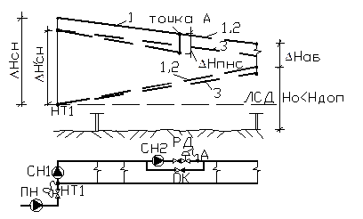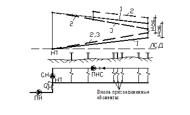 а) Протяженная трасса, ровный профиль (рис.6.12). ПНС на обратке применяется при