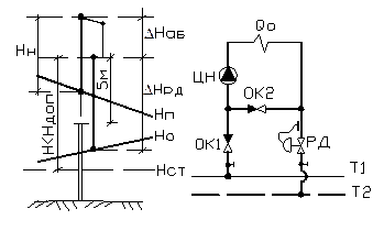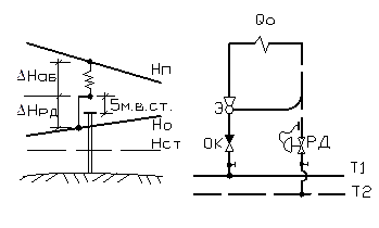 6. Если Н о пересекает h зд (рис. 6.26), на обратке устанавливают РД и на подаче ОК. В статическом режиме оба клапана закрываются.