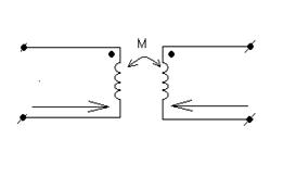 M<0 при встречном включении, токи входят в разноименные зажимы.