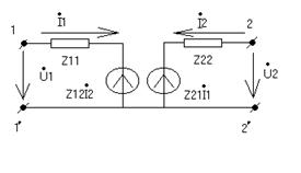 Схемы замещения индуктивно сведённых ветвей в Z параметрах с управляемыми источниками.