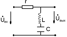 H(p)=(Uвых(p))/(Uвх(p))=(I*ZL)/(I*Zвх)= =(p*L)/(r+p*L+1/(p*c))=(p2*L*C)/(p2*L*C+p*c*r+1)= =p2/p2+(w/Q)*p+w20)