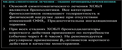 - Объем лечения увеличивается по мере нарастания тяжести болезни. Его уменьшение при ХОБЛ, в отличие от бронхиальной астмы, как правило, невозможно.