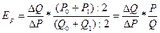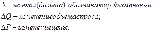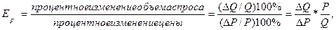 Если обозначить цену Р, а величину спроса Q, то показатель (коэффициент) эластичности спроса по цене Ер будет равен: