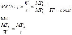 Пусть цена капитала К равна проценту r, а цена труда L-заработной плате W, тогда