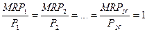Смысл данного равенства заключается в том, что каждый ресурс используется до тех пор, пока его предельный продукт в денежном выражении не сравняется с иеной ресурса. Поэтому