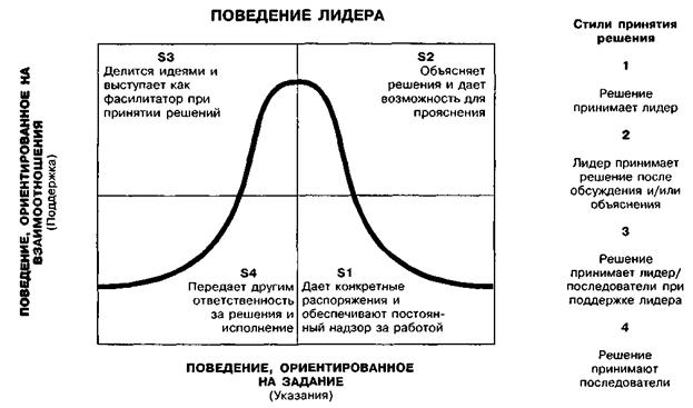 Лидеры, использующие эту модель, оценивают задачу, которую необходимо выполнить, и зрелость исполнителя. Конкретные задачи и зрелость исполнителя вместе образуют конкретную ситуацию. После того как лидеры определили конкретную ситуацию, они могут выбрать подходящее поведение, применение которого, вероятнее всего, будет эффективным. Лидер может сделать выбор из комбинаций типов поведения, ориентированных на задачу и на взаимоотношения с исполнителями. Поведение, ориентированное на задачу, подразумевает постановку целей, организацию, определение временных рамок, руководство, контроль. Лидер определяет роли, указывает исполнителям, что, когда, где и как нужно сделать и кто будет осуществлять конкретную деятельность по выполнению конкретных задач. Поведение, ориентированное на взаимоотношения с исполнителями, подразумевает общение, способность выслушать, содействие, обратную связь, обеспечение социальной и эмоциональной поддержки. Способ сочетания меняющихся объемов поведения, ориентированного на задачу, и поведения, ориентированного на человеческие отношения, является стилем лидерства.