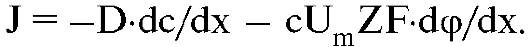 Эйнштейн показал, что подвижность ионов Um выражается через коэффициент диффузии D и абсолютную температуру Т: Um = D/(RT), тогда уравнение Нернста-Планка принимает вид