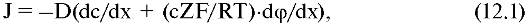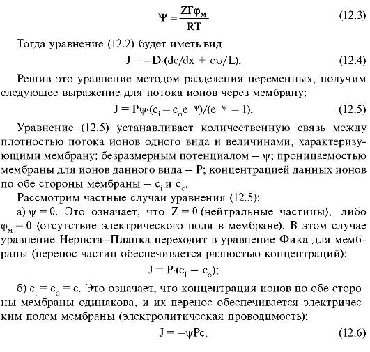 Сквозь мембрану проходят потоки ионов, для которых справедливо уравнение Нернста-Планка (11.18):