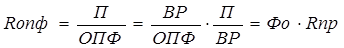 Фондоотдача (Фо) исчисляется как отношение стоимости продукции к среднегодовой стоимости ОПФ