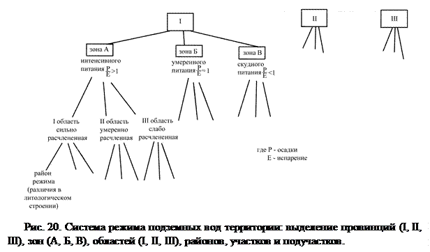 Выделение таких провинций, зон, областей, районов, участков и подучастков позволяет районировать любую территорию по условиям формирования режима подземных вод. Подобное районирование служит основой для размещения опорной наблюдательной сети стационарного изучения режима подземных вод.