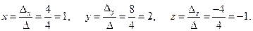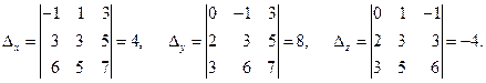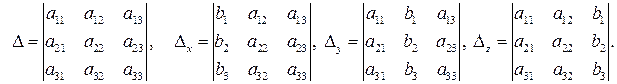 Используя определители 3-го порядка, решение такой системы можно записать в таком же виде, как и для системы двух уравнений, т.е.