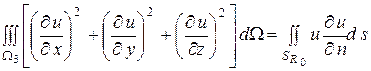 - два решения внешней задачи Неймана, удовлетворяющие одному и тому же граничному условию. Тогда их разность есть гармоническая функция в бесконечной области для которой