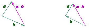 Разностьюa–b двух векторов a и b называется сумма a +(– b), т.е. чтобы вычесть из вектора a вектор b, достаточно прибавить к вектору a вектор (– b). Отметим, что если на векторах a и b построить параллелограмм, то одна его диагональ равна сумме a+b, а вторая – разности a–b.