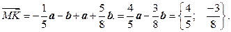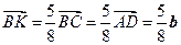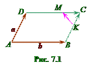 Пример 7.1. В параллелограмме ABCD сторона BC разделена точкой K так, что 3| BK |=5| KC |, а сторона CD – точкой M так, что | CM |=4| MD | (см. рис.7.1). Разложить вектор