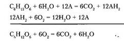 В организме этот процесс протекает многостадийно. Углерод превращается в диоксид углерода за счет кислорода самого окисляемого вещества и кислорода воды. В реакции участвуют акцепторы водорода, которые переносят его на кислород. Кислород используется для синтеза воды за счет водорода окисляемых субстратов.
