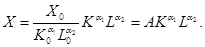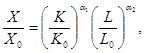 где X0, K0, L0 - значения выпуска и затрат в базовый год.