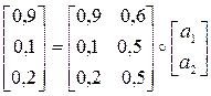 [0,9 0,1 0,2] = [ a1, a2 ] o