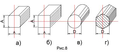 Сталь горячекатаная квадратная (рис.8б) изготавливается по ГОСТ 2591-88 с размерами А=5-200мм и полем допусков до 2,5% от размера А.
