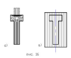 При разработке процессов обработки давлением следует учитывать направление волокон в исходной заготовке и желательное расположение волокон в готовой детали с учетом действующих на нее нагрузок. К примеру, болт или вал-шестерня, изготовленные высадкой головки из катаного прутка (рис. 16а) имеют более благоприятную макроструктуру для характера действующих на них сил, чем те же изделия, полученные из катаного прутка точением на токарном станке (рис.16б). Кроме того, стержневая часть у высаженных изделий оказывается прочнее, чем у точеных, так как при токарной обработке в стружку удаляется качественный наружный слой прутка, а менее качественная сердцевина остается в изделии. Коленчатые валы, полученные гибкой исходного прутка, имеют макроструктуру более благоприятную для действующих нагрузок (рис. 17а), чем те же валы, полученные точением прутка большего диаметра (рис.17б). К тому же, в первом случае волокна оказываются неперерезанными, что обеспечивает повышенную прочность металла колена.