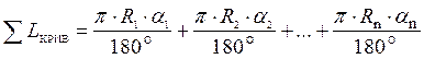 Общий размер заготовки для операции гибки (развертки) определяют как сумму прямолинейных и криволинейных участков, то есть (рис. 56):