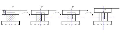 – с четырех сторон с промежуточными кантовками поковок на угол α =90О (рис. 62а,б,в,г), применительно к заготовкам и поковкам квадратного и прямоугольного сечения больших размеров.