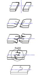 – внахлестку (внакладку), осуществляемую в случае возможности отковки (заделки) в свариваемых заготовках скосов-лацканов (рис. 63а);
