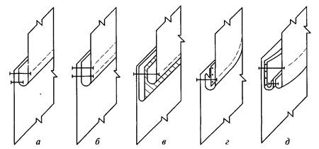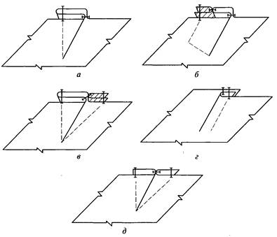 Рис.4.1. Обработка вытачек: а-в – неразрезных; г,д – разрезных