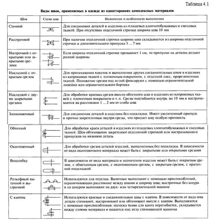 Вытачки в изделиях из плащевых материалов проектируют неразрезными (рис. 4.1, а-в), а в изделиях из материалов значительно жестких с пленочным покрытием и прорезиненных — разрезными (рис. 4.1, г, д). Раствор вытачек должен быть небольшим, поскольку невозможно сутюживание слабины в их концах. Вытачки стачивают, швы настрачивают или расстрачивают.