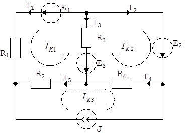 Уравнения составляются для независимых контуров. Направление обхода контуров совпадают с выбранными произвольно направлениями контурных токов.