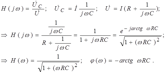 Пример. Найти КПФ RC (рис. 5.1.a). Построите графики АЧХ и ФЧХ.