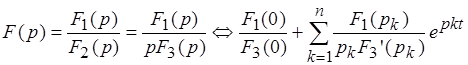 , то оригинал определяется по теореме разложения. В зависимости от вида корней уравнения F2(p)=0, существуют следующие виды записи теоремы разложения: