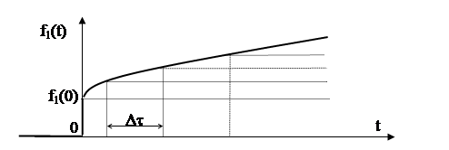 Если известна переходная характеристика цепи, то сложное воздействие f1(t) аппроксимируется ступенчатыми функциями, возникающими через равные промежутки времени Dt (рис. 8.3)