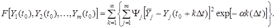 где yj и a - положительные константы, a t0 - начальное время. Экспоненциальный член является добавочным весовым коэффициентом, зависящим от времени.
