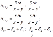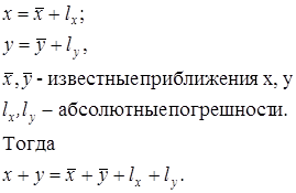 Рассмотрим абсолютную и относительную погрешности каждой из четырех арифметических операций. Пусть числа x и y представлены так: