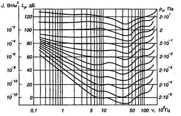 Условным порогом звукового давления считается величина, равная 2·10-5 Па.