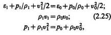 где ео,»о, Ро, Ро — соответственно удельная внутренняя энергия, скорость, плотность, давление газа перед фронтом ударной волны; е,, vj, ph pi —те же параметры за фронтом ударной волны (в системе координат, движущейся вместе с ударной волной).