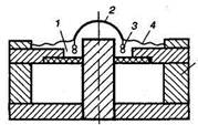 Широкое применение в акустике нашли катушечные электродинамические микрофоны, принципиальная конструкция которых представлена на рис. 3.13. Под действием падающей звуковой волны происходит колебание мембраны 2, на которой закреплена сигнальная звуковая катушка 3 в кольцевом зазоре 1 постоянного магнита 5. При этом в катушке 3 возникает э.д.с. под действием изменения магнитного поля, пронизывающего эту катушку при колебании мембраны. Таким образом, энергия падающей звуковой волны преобразуется в электрический сигнал.
