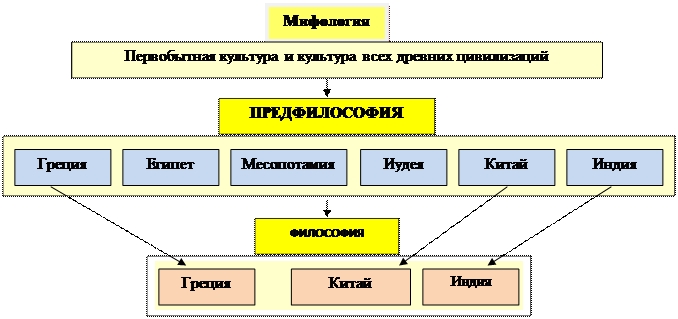 Попытки рационального осмысления мира и человека привели к формированию сначала предфилософии, а затем и самой философии (см. схему 1).