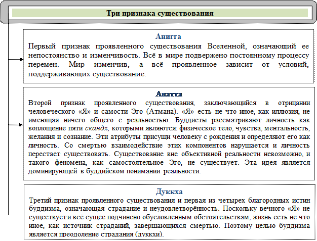 Из трех признаков проявленного существования Вселенной буддизм формулирует четыре благородные истины.