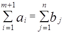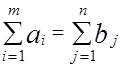 При решении транспортной задачи условия (1.25) и (1.26) могут быть выполнены, если общее количество груза на станциях отправления равно суммарной потребности в этом грузе на всех станциях назначения (баланс наличия и потребления). Это может быть записано в виде равенства
