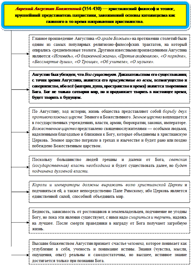 | Предсхолас-тика (эпоха «темных веков») V-VIII вв. | Боэций (480-524) | Государственный деятель и философ, которого называют «последним римлянином и первым схоластом». Его перевод с древнегреческого на латинский язык работ Аристотеля и комментарии к ним имели большое значение для средневековой философии. В своей работе «Об утешении философией» Боэций показал себя представителем философии неоплатонизма. В ней также видны едва заметные черты христианской философии. Он четко обозначил проблему «универсалий» (от лат. universalis — общий) — проблему природы общих понятий (т.е. где они существуют: в божественном разуме, в вещах или в разуме человека). А также ввел термины «субстанция», «эссенция», «акциденция», «атрибут» и «дефиниция» почти в том же значении, в каком они используются по сей день. | |