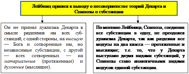 Схема 65. Вывод Лейбница о несовершенстве теорий Декарта и Спинозы о субстанции