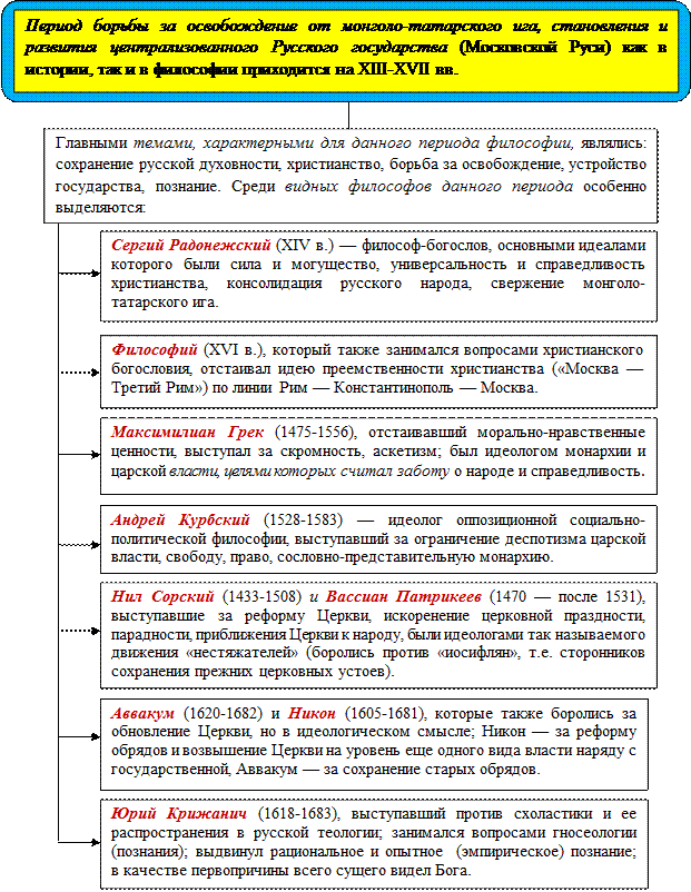 Схема 115. Ранняя русская философия XIII-XVII вв.
