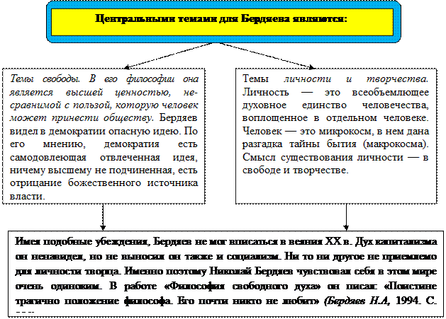 Схема 120. Центральные темы философии Н.А. Бердяева