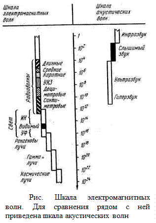 ) и т. п. Особое значение для подтверждения электромагнитной теории света имели опыты П. Н. Лебедева (1899), который показал, что измеренное им световое давление на вещество совпадает с вычисленным по теории Максвелла. Электромагнитная теория света подтверждает диалектическое единство между электромагнитными излучениями с разными длинами волн и убедительно демонстрирует один из основных законов диалектики, утверждающий, что количественные изменения ведут к коренным, качественным, изменениям, поскольку при переходе от длинных электромагнитных волн к коротким существенно изменяются их свойства. В соответствии со свойствами, а также с методами получения (электромагнитные генераторы, нагретые тела, рентгеновские трубки и пр.) электромагнитные излучения подразделяют на несколько диапазонов, границы которых условны и перекрываются. Диапазон с длинами волн от 10 нм до 400 мкм называют оптическим. Он граничит с одной стороны с рентгеновскими лучами, а с другой стороны с микроволновым радиоизлучением. Ощущение света вызывает излучение с длинами волн от 380 до 760 нм. Свет называют монохроматическим (греч. хрома – цвет), т. е. одноцветным, если в нем присутствует только одна длина волны (практически, если длины волн в нем различаются не более чем на десятые доли нанометра). Монохроматический свет видимого диапазона вызывает ощущение определенного цвета, однако при соблюдении вышеуказанного условия можно говорить о монохроматическом ультрафиолетовом или инфракрасном свете. Особое значение для человека и животных имеет белый свет, содержащий все длины волн видимого диапазона в таком соотношении по интенсивностям, в каком они присутствуют в солнечном свете, достигающем поверхности Земли.