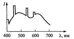 Рис. Спектр, резкие максимумы которого соответствуют спектру паров ртути