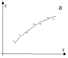 1. Аппроксимации – экспериментальные точки надо соединить плавной кривой и подобрать ее функциональное выражение (рис. 2.1,а).