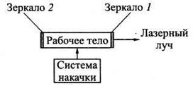 1. Рабочее тело – некоторая среда, которая внешним воздействием переводится в активное состояние. В зависимости от типа рабочего тела лазеры делятся на газовые, твердотельные, жидкостные, полупроводниковые. В качестве активной среды могут применяться все материалы, у которых можно обеспечивать инверсную населенность. (В качестве курьеза следует отметить, что человеческое дыхание, состоящее из двуокиси углерода, азота и водяных паров, является подходящей активной средой для слабого СО2-лазера). В твердотельных лазерах активный элемент обычно изготавливается в виде цилиндра, длина которого много больше его диаметра. Газовые и жидкие активные среды помещают в цилиндрическую кювету.