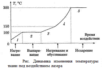 Динамика изменения свойств. Воздействие лазерного излучения приводит к повышению температуры тканей. По мере роста температуры в тканях протекают следующие процессы: