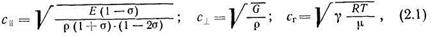 Скорости звука в твердых телах (с ^ и с ||) и в идеальном газе (с г) можно вычислить по формулам
